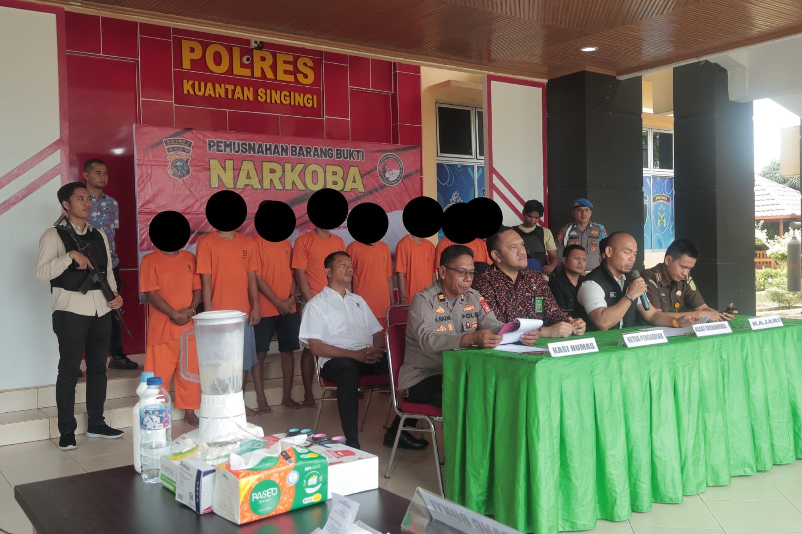 Kapolres Kuantan Singingi AKBP Angga F. Herlambang, S.I.K., S.H., melalui Kasat Resnarkoba Polres Kuansing AKP Novris H. Simanjuntak, S.H., M.H., menyampaikan “Pemusnahan barang bukti tersebut merupakan hasil dari pengungkapan kasus narkotika oleh Satresnarkoba Polres Kuansing beberapa waktu lalu. Kegiatan ini turut dihadiri oleh unsur forkopimda serta instansi terkait sebagai bentuk sinergi dan transparansi dalam penegakan hukum,” ujar Kasat.