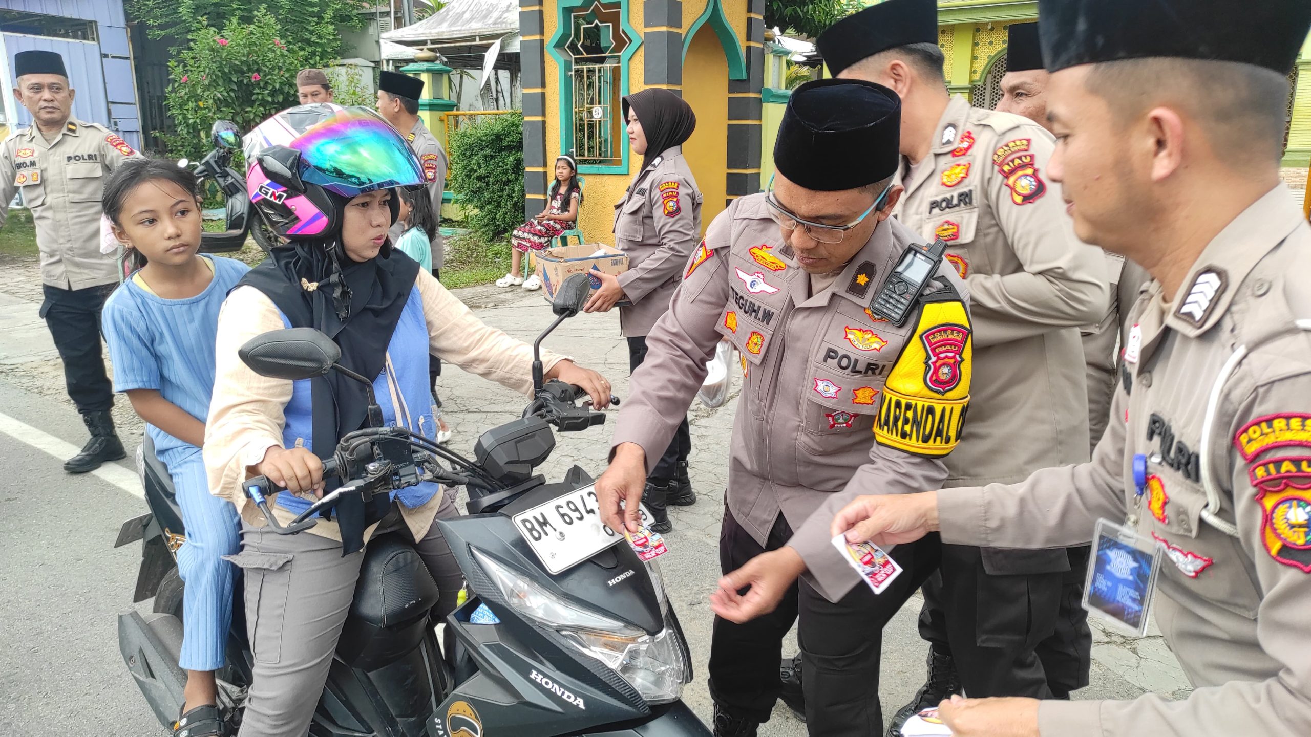 KUANTANSINGINGI, porosnusantara.com– Dalam rangka meningkatkan keselamatan dan kenyamanan pemudik selama musim mudik Lebaran 2025, Polres Kuantan Singingi (Kuansing) melaksanakan kegiatan sosialisasi dan pemasangan stiker Hotline Mudik Polri “110” di berbagai titik strategis di wilayah hukumnya. Kegiatan ini berlangsung pada Senin (17/3/2025) pukul 16.30 WIB hingga selesai di Jalan A. Yani, tepatnya di Simpang Tugu Pelajar, Teluk Kuantan, Kabupaten Kuansing.