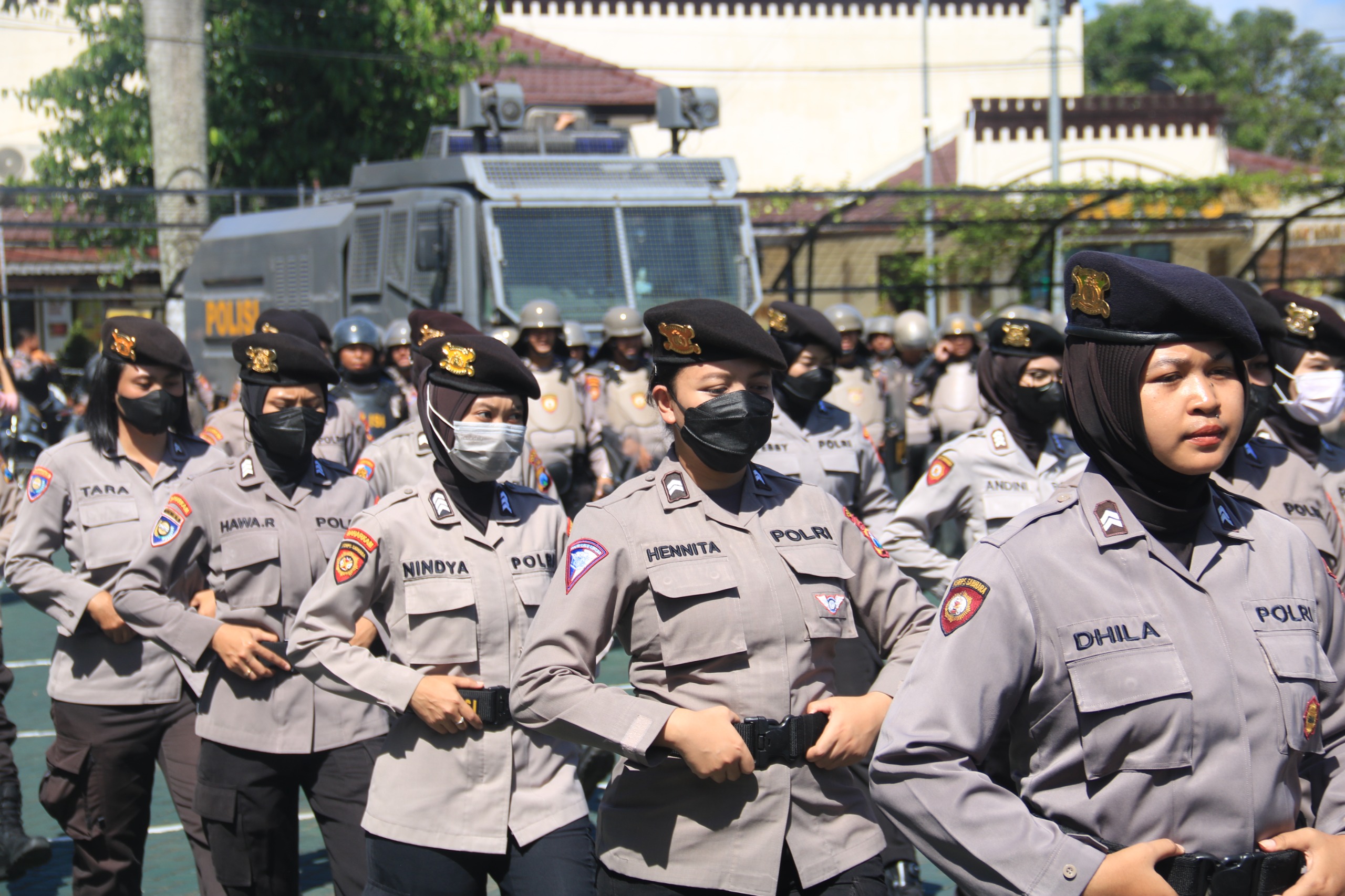 Menariknya, pelatihan ini tidak hanya diikuti oleh personel polisi laki-laki. Sejumlah Polisi Wanita (Polwan) turut dilibatkan secara aktif dalam sesi latihan khusus, salah satunya sebagai negosiator aksi massa—sebuah peran strategis yang mengedepankan pendekatan persuasif dan komunikasi efektif di lapangan.