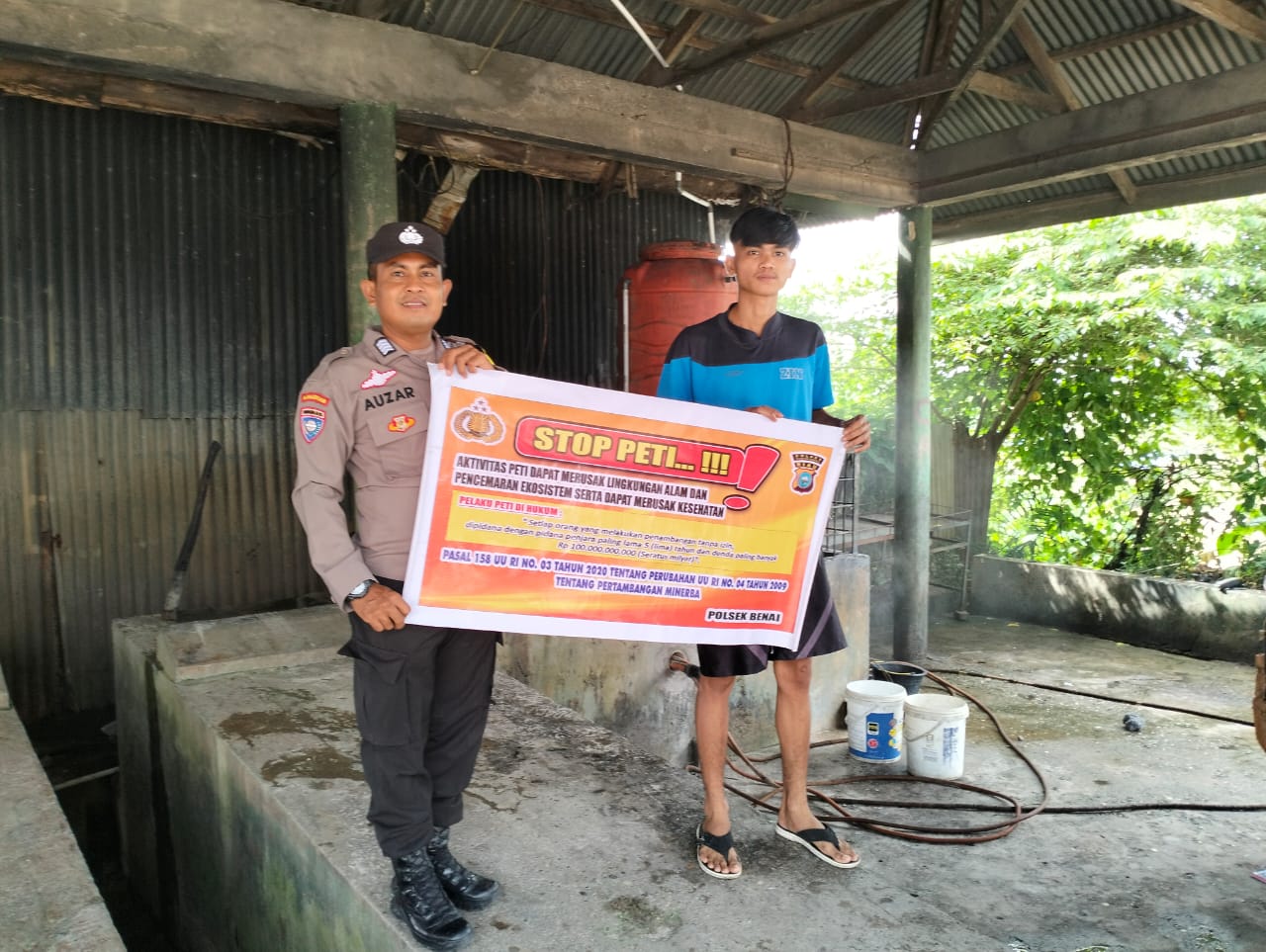 Dalam pelaksanaan kegiatan ini, kami tekankan dua hal penting kepada masyarakat. Pertama, dilarang keras melakukan aktivitas Pertambangan Emas Tanpa Izin (PETI) di wilayah hukum Polsek Benai. Kedua, mari kita bersama-sama menjaga lingkungan dan kelestarian alam demi anak cucu kita yang akan datang,” ujar Bripka Auzar di hadapan warga.