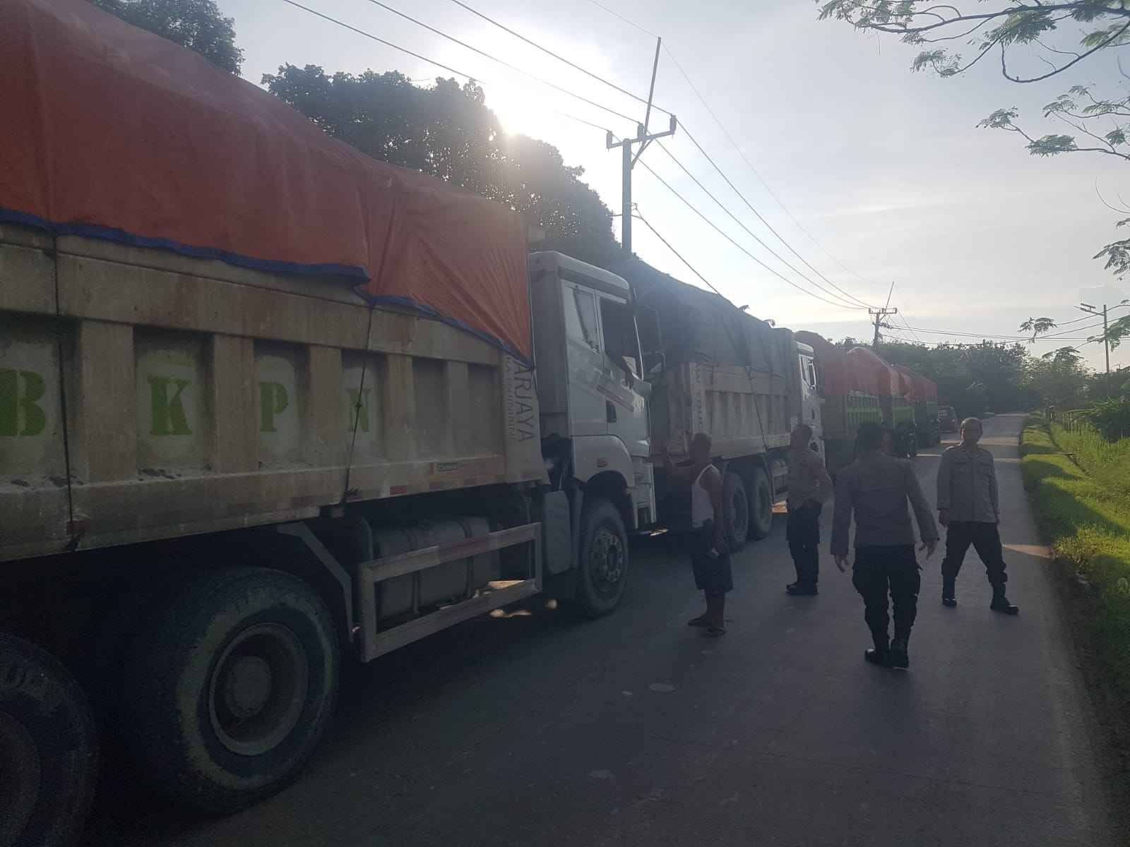 oli dialogis sekaligus menertibkan mobil tronton pengangkut tanah yang parkir sembarangan di sepanjang Jalan Raya Maja-Curugbitung.