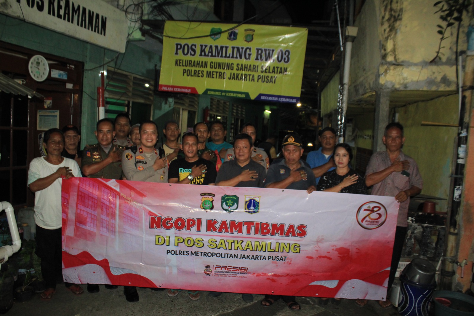 JAKARTA | POROSNUSANTARA.COM – Polsek Kemayoran yang dipimpin oleh Kompol. Arnold J. Simanjuntak, S.E.,S.I.K.,M.H mengadakan kegiatan Ngopi Kamtibmas di Pos Kamling RW 03 Kelurahan Gunung Sahari Selatan Kecamatan Kemayoran Jakarta Pusat. Selasa (23/7/2024).