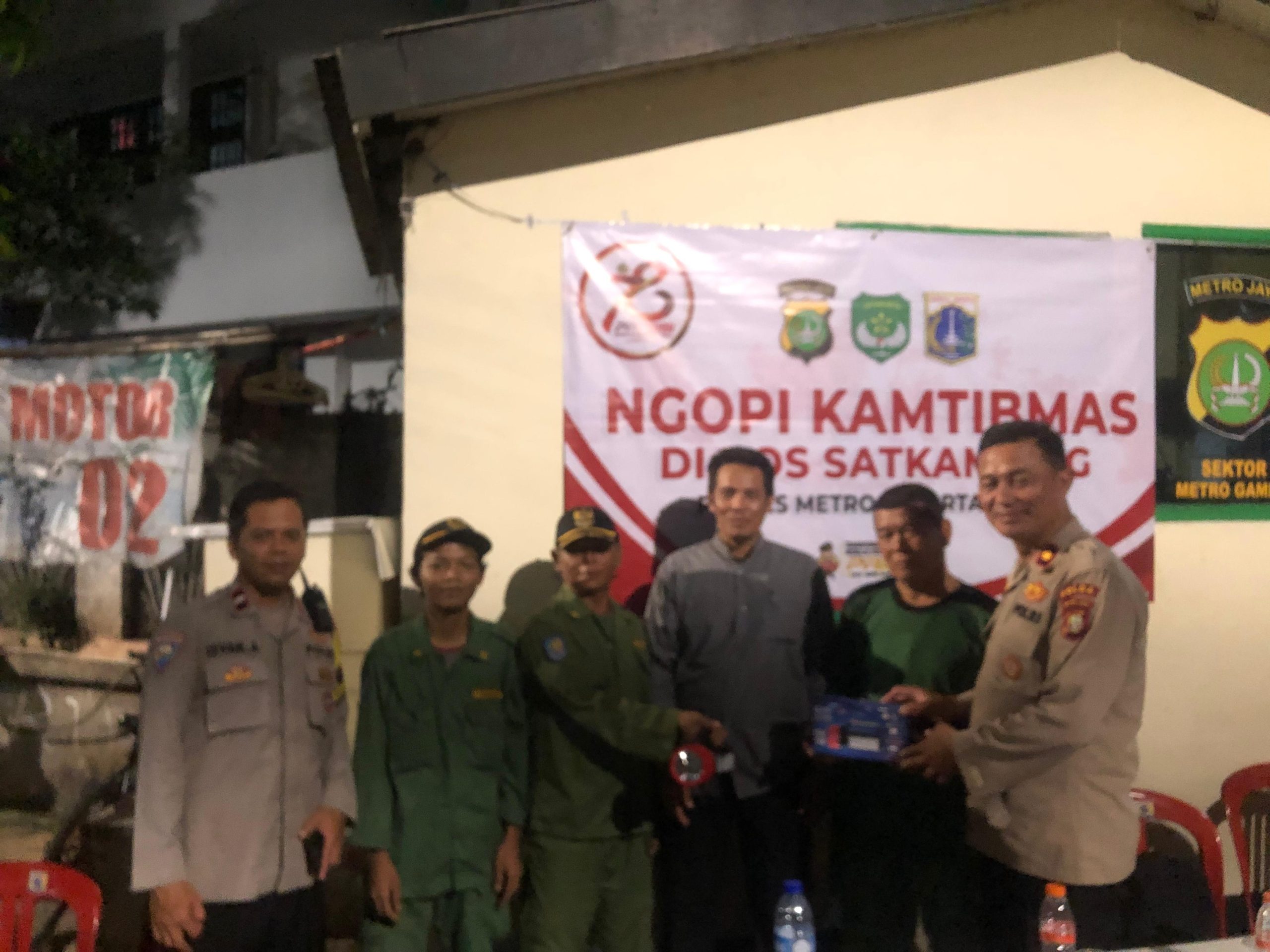Meneruskan perintah Kapolres Metro Jakarta Pusat Kombes Pol Susatyo Purnomo Condro, S.H. S.I.K., M.Si, agar memperhartikan satuan pengamanan yang bertugas di lingkungan rukun warga (RW), Kompol Nababan memberikan bantuan peralatan jaga berupa senter, dan tongkat T. (Sri wulandari)