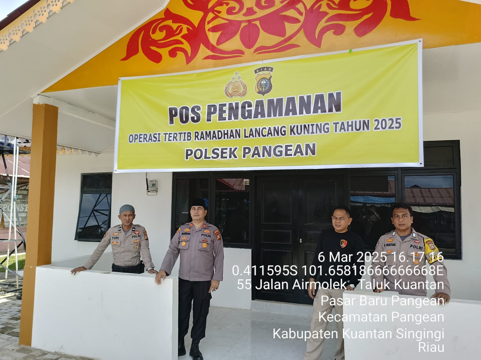 Kegiatan ini dimulai pada pukul 17.00 WIB dan berlangsung hingga pukul 17.40 WIB dengan situasi yang tetap aman dan kondusif. Pengamanan ini dipimpin oleh Kapolsek Pangean yang diwakili oleh AKP Zulfatriano, S.H., M.H., bersama personel lainnya, yaitu Aiptu Oseki, Aipda Jemmi S., Aipda Yuri F., dan Bripka Raja G.