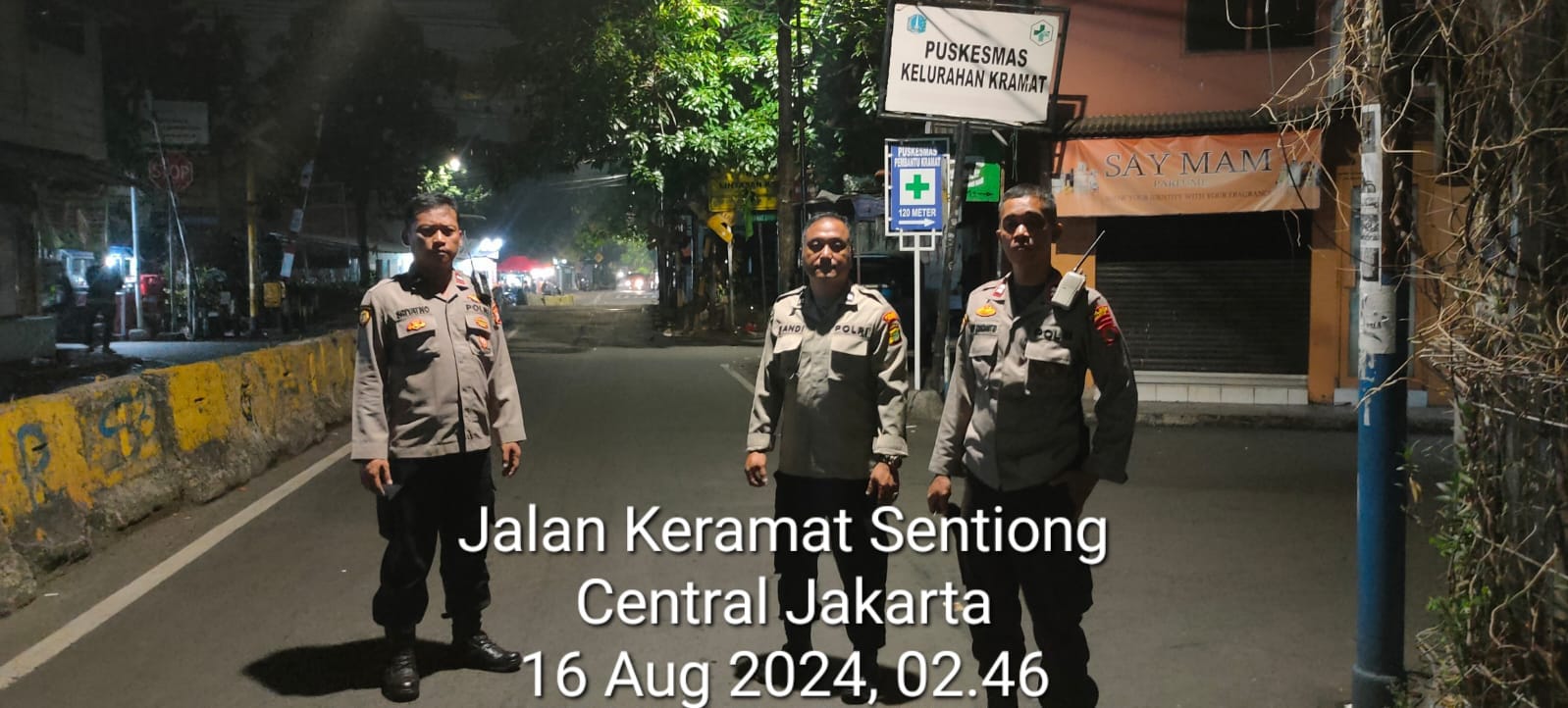 JAKARTA | POROSNUSANTARA.COM – Polsek Senen melaksanakan Patroli malam hari dan strong point disepanjang wilayah yang bakal terjadi nya gangguan kamtibmas di Kecamatan senen Jakarta Pusat. Jumat (16/08/2024).