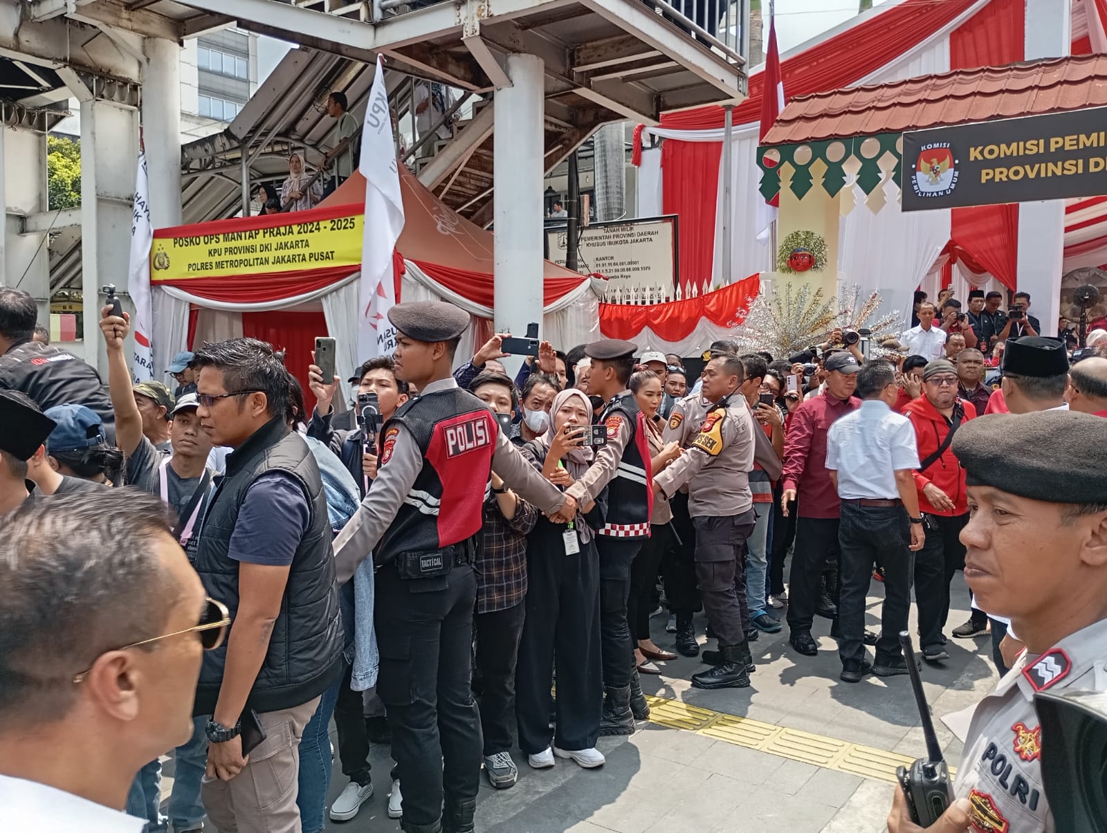 bersama Jajaran Polres Metro Jakarta Pusat yang di backup Langsung oleh Polda Metro Jaya dan Kodam Jaya sejak pagi sudah bersiaga di Seputaran kantor KPUD DKI Jakarta.