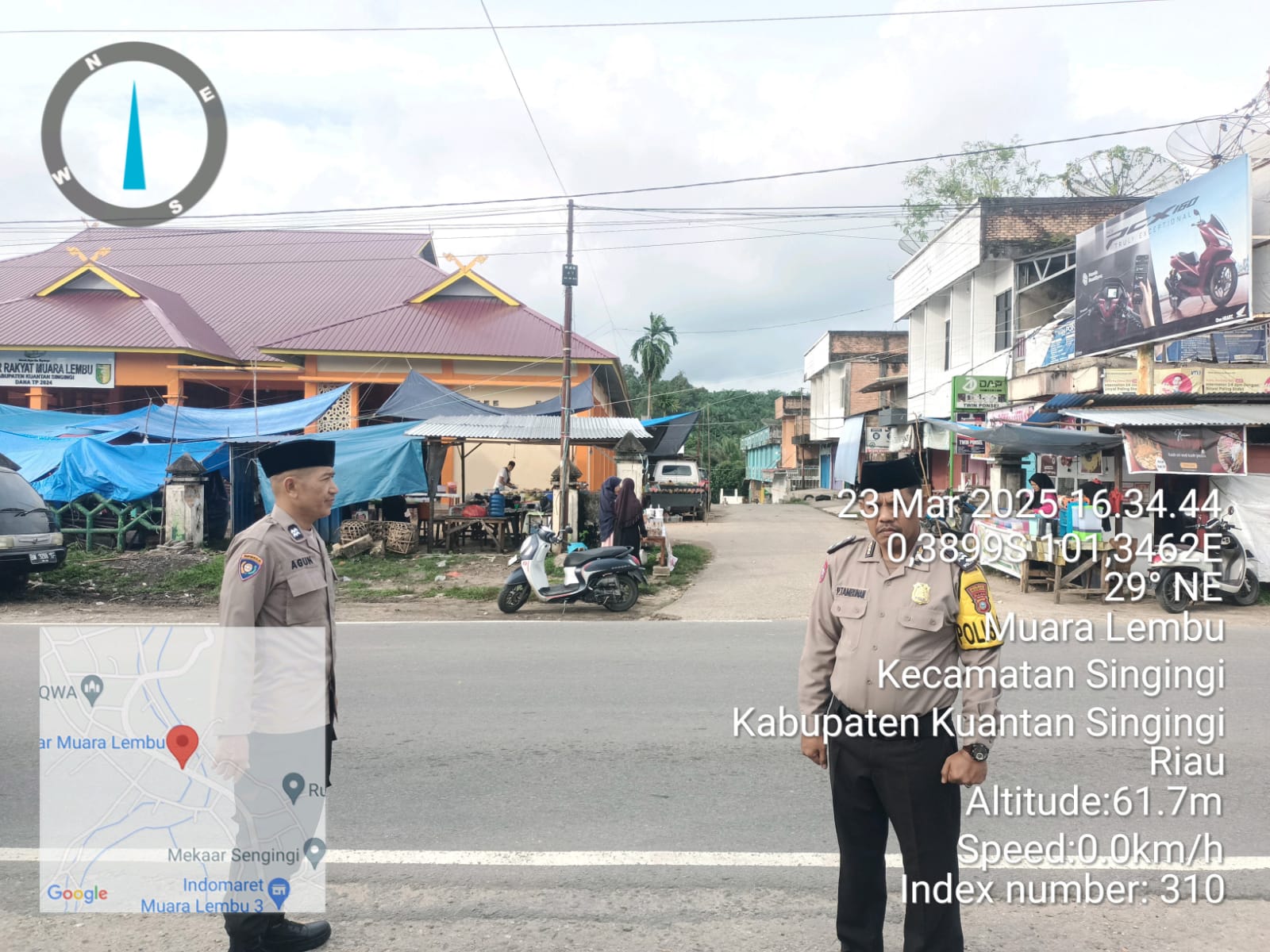 Kegiatan pengamanan ini dilaksanakan pada Minggu, 23 Maret 2025, sekitar pukul 17.00 WIB, dengan tujuan untuk memastikan aktivitas jual beli masyarakat menjelang waktu berbuka puasa berjalan dengan tertib, aman, dan lancar. Dalam pelaksanaan pengamanan ini, Polsek Singingi menurunkan empat personel, yaitu Aiptu M. Donal, Aiptu P. Tambunan, Aiptu Andi G. dan Brigadir Abdi K.