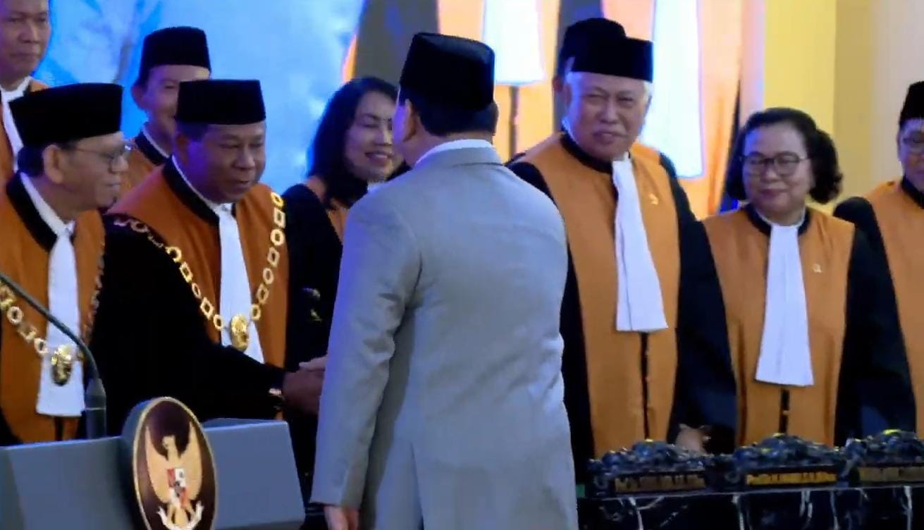 “Saya mengakui, baru sekarang saya sunguh-sungguh sadar dan mengerti betapa berat beban bapak ibu ibu para hakim,” kata Prabowo yang disambut tepuk tangan para hakim yang hadir di MA.