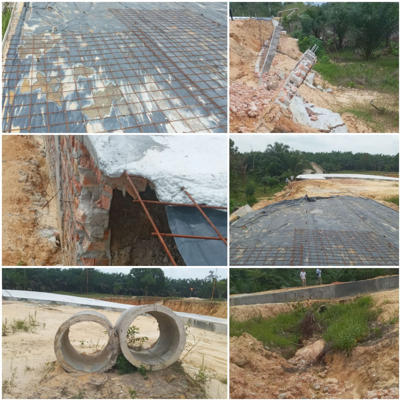 Terdapat pekerjaan gorong gorong yang belum terpasang sekitar 15 meter, Pekerjaan cor pada bangunan