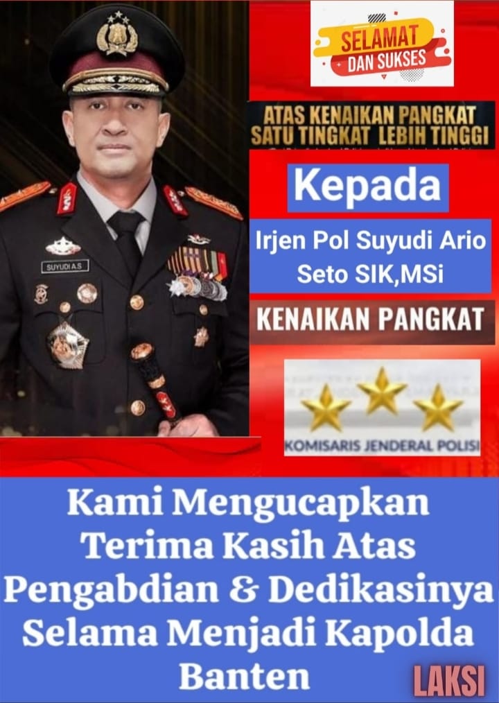 Kapolda Banten Irjen Pol Suyudi Ario Seto Suyudi, yang lahir di Jakarta pada 14 Juli 1974, beliau