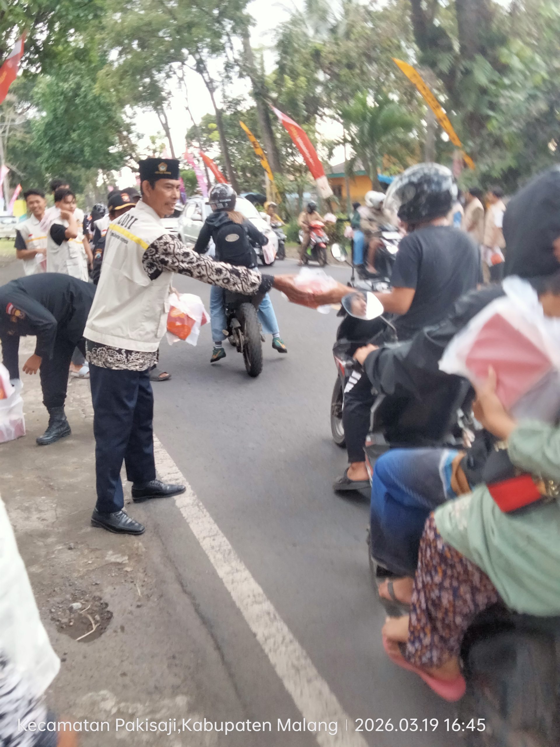 Malang | POROSNUSANTARA.COM – Semangat berbagi di bulan suci Ramadan kembali digaungkan Pemuda LDII Kabupaten Malang melalui aksi sosial pembagian takjil kepada masyarakat, Kamis (19/3/2026) sore. Kegiatan ini berlangsung di Jalan Raya Pakisaji mulai pukul 16.30 WIB dan menyasar para pengguna jalan menjelang waktu berbuka puasa.