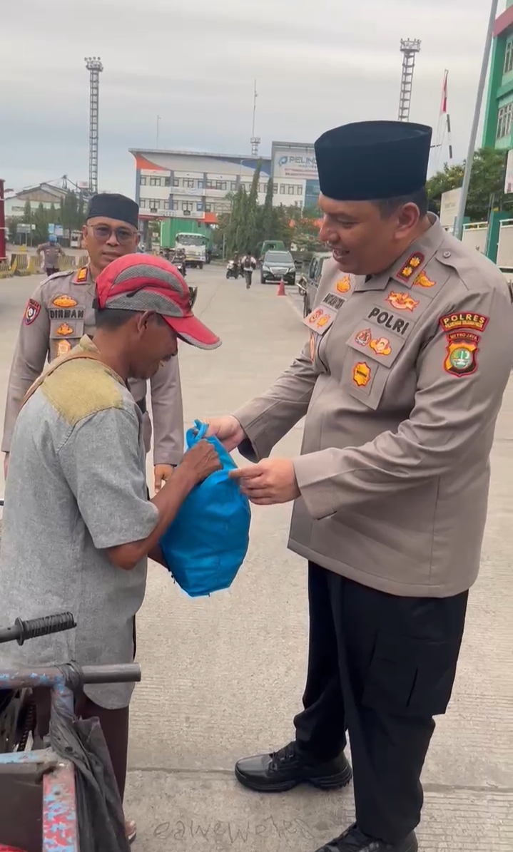 JAKARTA | POROSNUSANTARA.COM – Dalam rangka semangat berbagi di bulan suci Ramadhan penuh berkah dan ampunan, Kapolres Pelabuhan Tanjung Priok, AKBP Dr. Martuasah H. Tobing, S.I.K., M.H., bersama jajarannya membagikan Sembako kepada para pengguna jalan di Pelabuhan Tanjung Priok. Kegiatan ini merupakan bentuk kepedulian Polres Pelabuhan Tanjung Priok terhadap masyarakat yang masih dalam perjalanan saat waktu berbuka puasa tiba, Jumat sore.