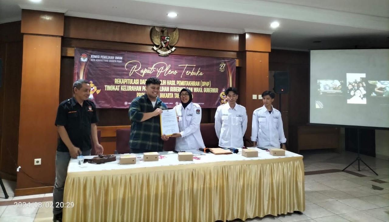 Kegiatan ini untuk membahas Rekapitulasi Daftar Pemilih Hasil Pemutakhiran (DPHP) tingkat kelurahan Menteng pada pemilihan Gubernur dan Wakil Gubenur Provinsi DKI Jakarta Tahun 2024. Hasil Pemutakhiran meliputi Jumlah TPS 44 Jumlah Total Pemilih 23.093 Suara (Jumlah Laki-laki : 11.359 Suara dan Jumlah Perempuan : 11.734 Suara) ujar Roby