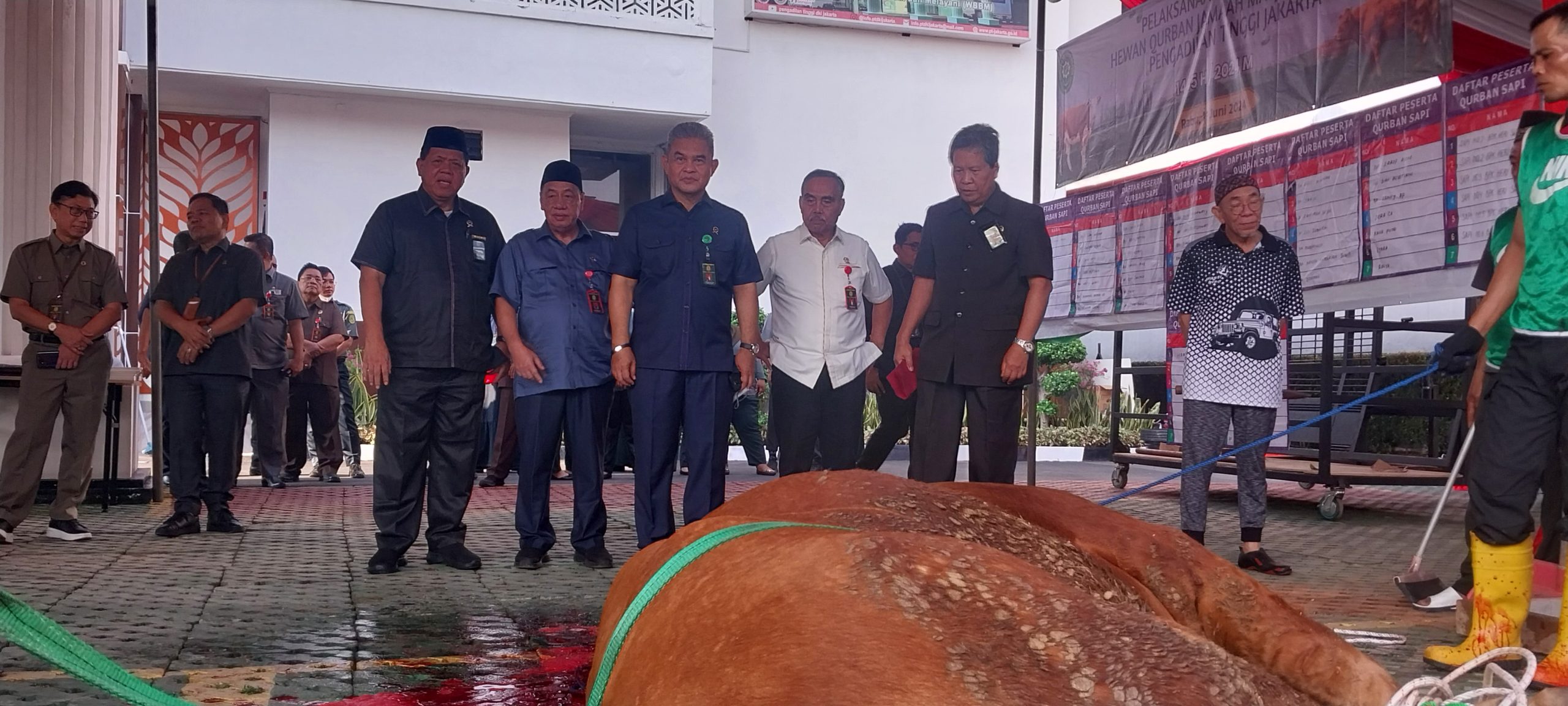 Sementara Ketua panitia penyembelihan hewan qurban , Haris Munandar dalam sambutannya menyebutkan ada 16 ekor sapi, terdiri dari 56 orang yang berkurban, di antaranya dari Ketua Pengadilan Tinggi Jakarta Dr. Herri Swantoro,
