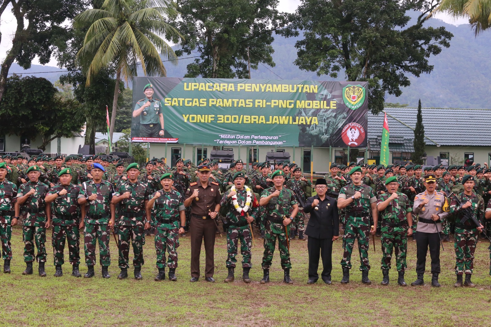 Pangdam III Siliwangi sebagai Inspektur Upacara Penyambutan, memberikan penghormatan kepada Satgas Yonif 300 Brajawijaya atas dedikasi, pengabdian dan pengorbanan seluruh Prajurit Siliwangi di penugasan. Selain itu, beliau juga berkesempatan untuk berkeliling Komplek Asrama dengan kendaraan taktis ATAV P6 sekaligus meresmikan ruang makan “Kelabo Ilaga” yang baru selesai dibangun.