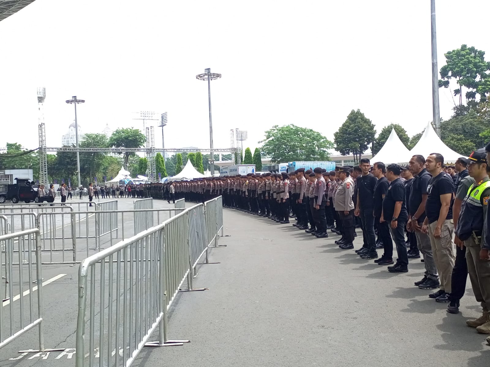 Personel disebar di sejumlah titik kawasan GBK mulai dari pintu masuk, tempat berlangsungnya pertandingan, hingga di seputar GBK Senayan.