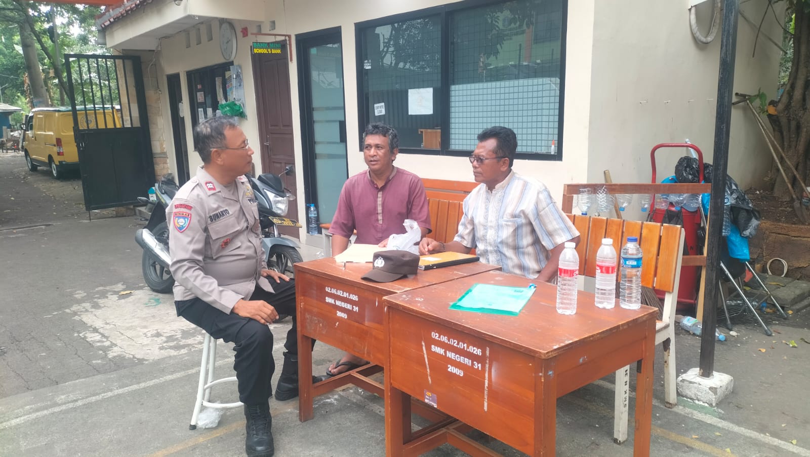 Jakarta | POROSNUSANTARA.COM – Sambang Ke Sekolahan Bhabinkamtibmas Kelurahan Johar Baru Aiptu Sunarto Patroli Berikan Imbauan Petugas Keamanan Sekolah SMK Negeri 31 Jakarta di jalan Kramat Jaya RW 01 Kelurahan Johar Baru Jakarta Pusat. Jum’at (5/7/2024).