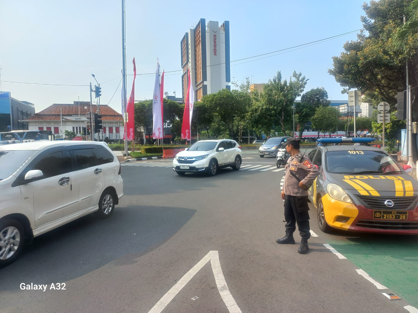 JAKARTA | POROSNUSANTARA.COM – Anggota Patroli Polsek Metro Gambir Aipda Susanto melaksanakan pengaturan lalu lintas di Jl. Veteran 3, Gambir, Jakarta Pusat. Sabtu (31/8/2024).