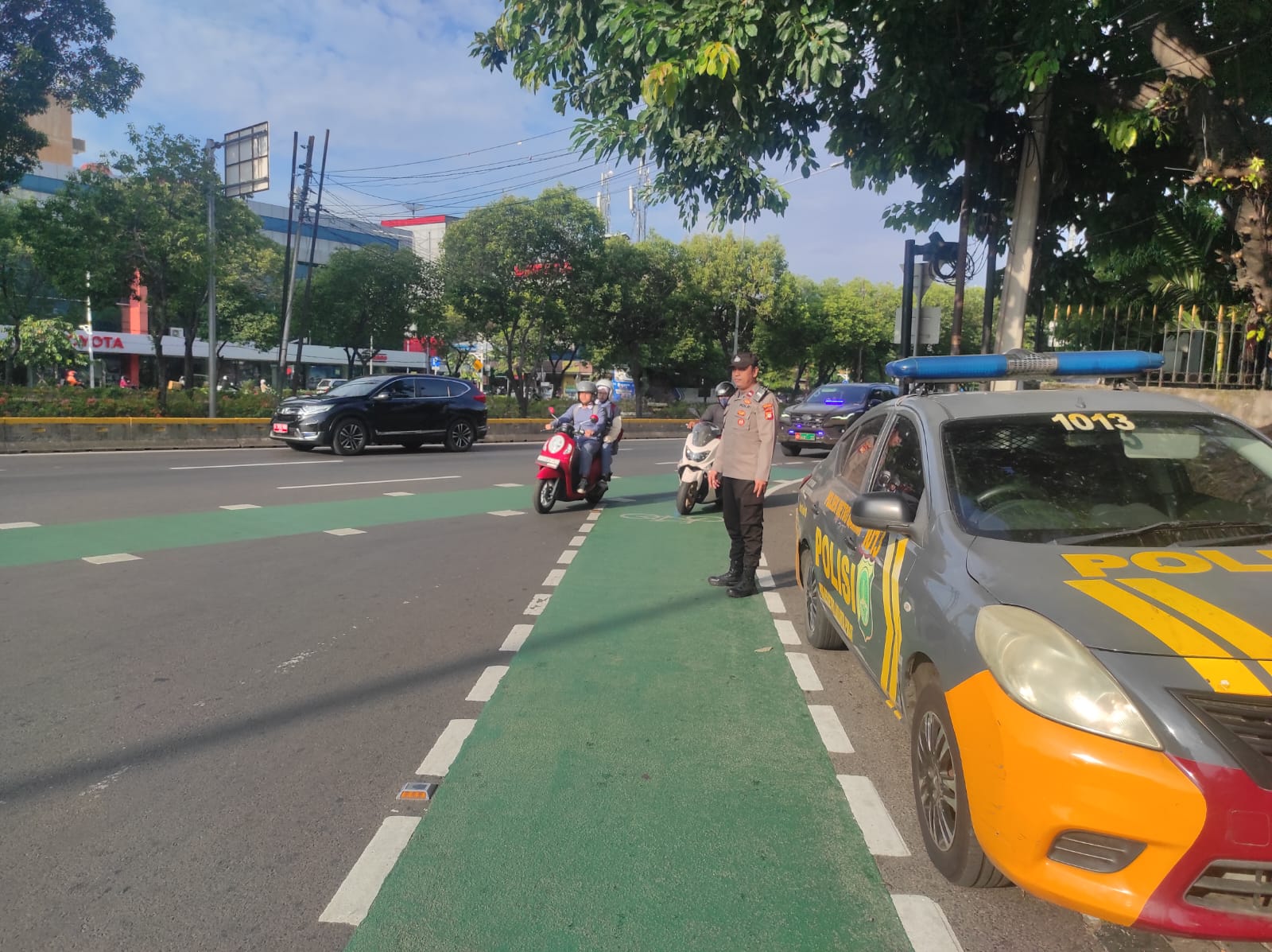 Kegiatan pengaturan lalu lintas ini merupakan kegiatan rutin yang dilaksanakan baik pagi hari maupun sore hari guna mengantisipasi titik rawan