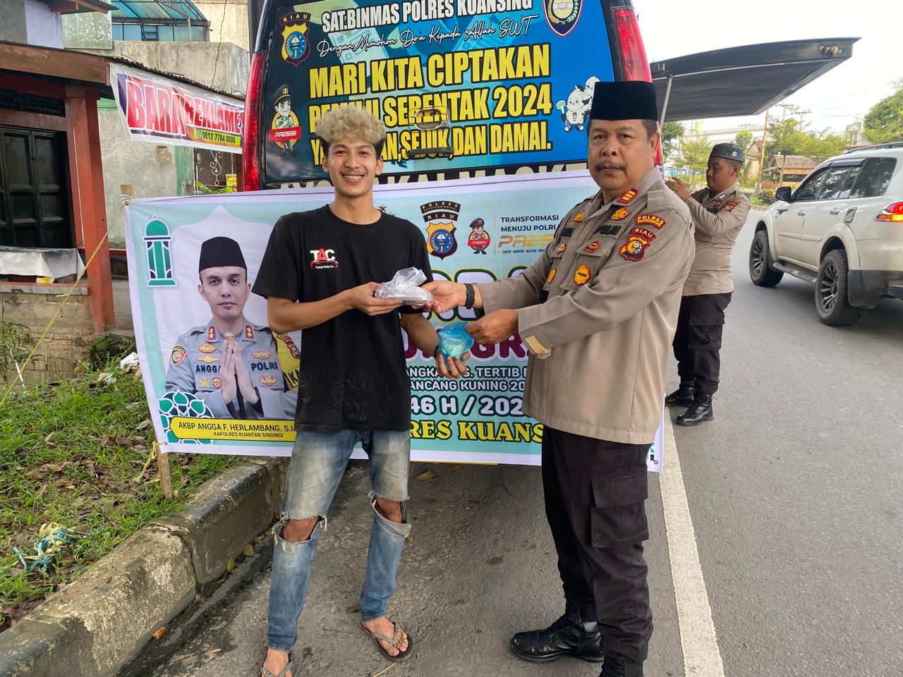 Kapolres Kuantan Singingi AKBP Angga F. Herlambang, S.I.K., S.H., melalui Kasat Binmas Polres Kuansing, AKP H. Yuhelmi, menyampaikan bahwa kegiatan ini merupakan bentuk kepedulian kepolisian terhadap masyarakat, terutama di bulan Ramadhan yang penuh berkah. “Kami ingin berbagi kebahagiaan dengan masyarakat, terutama bagi mereka yang masih dalam perjalanan menjelang waktu berbuka puasa. Kegiatan ini juga menjadi bentuk pendekatan sosial antara kepolisian dan masyarakat agar semakin terjalin hubungan yang harmonis,” ujar AKP H. Yuhelmi.
