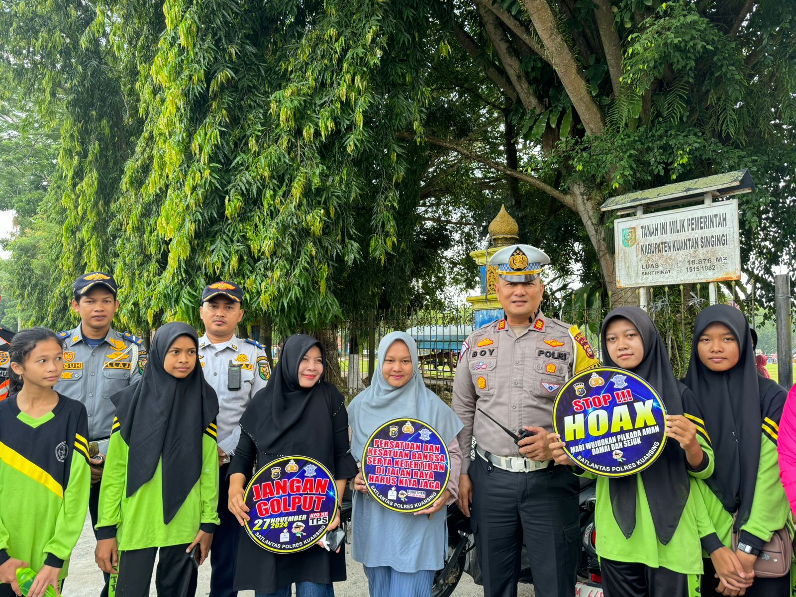 Kegiatan Cooling System Pilkada Damai 2024 ini merupakan bagian dari upaya preventif yang dilakukan oleh Polres Kuansing untuk mengantisipasi gangguan keamanan selama berlangsungnya tahapan Pilkada. Personel Satlantas memberikan edukasi dan himbauan langsung kepada masyarakat di Lapangan Limuno mengenai pentingnya menjaga ketertiban dan keamanan selama proses Pilkada. Pesan-pesan yang disampaikan menekankan pentingnya menjaga situasi kondusif agar pesta demokrasi ini berjalan dengan damai dan tertib.