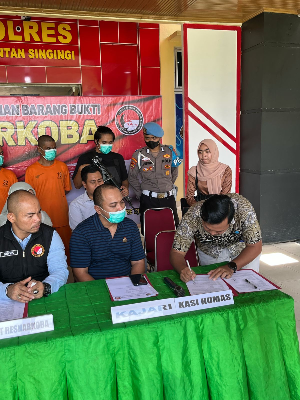Sat Resnarkoba Polres Kuansing Gelar Press Release dan Pemusnahan Barang Bukti Narkotika