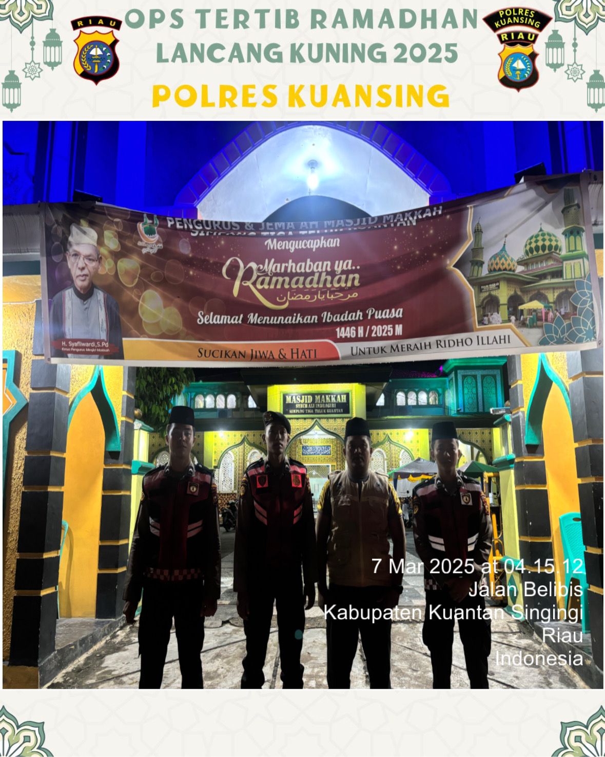 Kapolres Kuantan Singingi AKBP Angga F. Herlambang, S.I.K., S.H., melalui Kasat Samapta Polres Kuansing AKP Repriadi, S.E., menyampaikan “Patroli ini dilakukan untuk memastikan situasi tetap kondusif serta memberikan rasa aman bagi masyarakat yang melaksanakan ibadah sholat Subuh. Dengan hadirnya personel kepolisian di tengah-tengah masyarakat, diharapkan mampu mencegah potensi gangguan keamanan dan ketertiban selama bulan Ramadhan,” ujar Kasat.