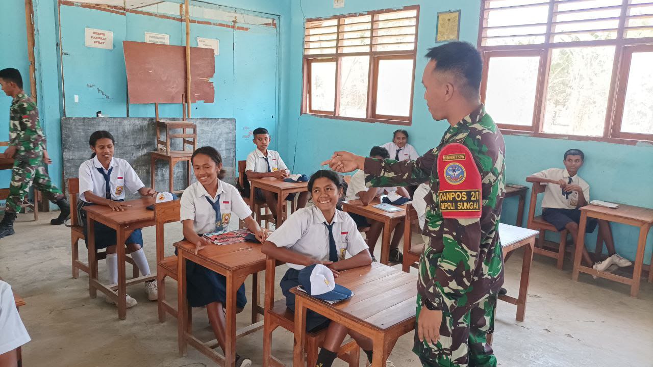 AMFOANG TIMUR | POROSNUSANTARA.COM – 22 Desember 2024 – Dalam rangka mendukung peningkatan kualitas pendidikan di wilayah perbatasan, Satgas Pengamanan Perbatasan RI-Timor Leste (RDTL) Sektor Barat Yonarhanud 15/DBY Pos Oepoli Sungai melaksanakan program Gadik (Tenaga Pendidik) di SMP Negeri Satu Atap Desa Taloi, Kecamatan Amfoang Timur. (21/12)