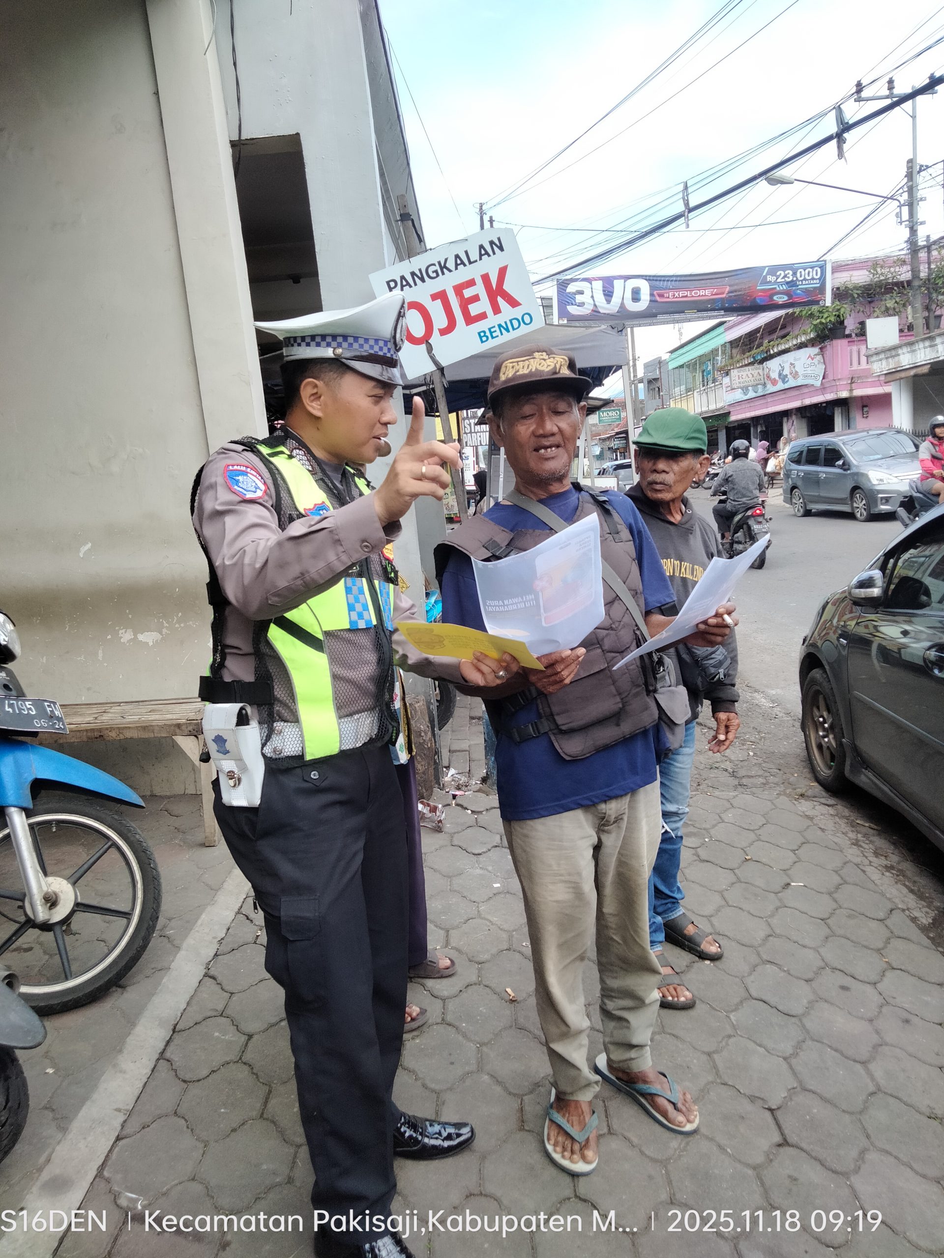 MALANG | POROSNUSANTARA.COM – Satuan Lalu Lintas (Satlantas) Polres Malang terus menggencarkan edukasi keselamatan berkendara melalui rangkaian Sosialisasi Operasi Zebra Semeru 2025. Pada Selasa, 18 November 2025, tiga personel Satlantas yakni Bripka Nizar, Brigpol Arik, dan Bripda Fatimah turun langsung memberikan penyuluhan di wilayah Kecamatan Pakisaji.