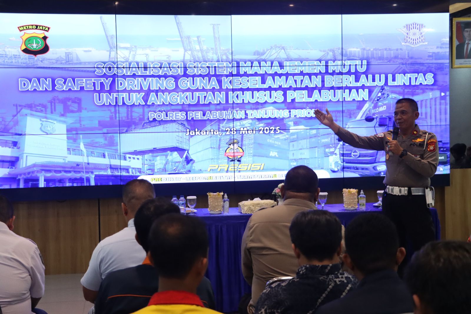JAKARTA UTARA | POROSNUSANTARA.COMUnit Keamanan dan Keselamatan (Kamsel) Satuan Lalu Lintas Polres Pelabuhan Tanjung Priok sukses menggelar kegiatan sosialisasi mengenai Sistem Manajemen Mutu dan Safety Driving. Kegiatan yang berlangsung di Aula Presisi Polres Pelabuhan Tanjung Priok diikuti oleh 50 peserta yang terdiri dari pengemudi angkutan khusus pelabuhan dan pihak terkait, juga dihadiri oleh Kapolres Pelabuhan Tanjung Priok AKBP Dr. Martuasah H. Tobing, S.I.K., M.H., Wakapolres KOMPOL Dr. Budi Santoso, S.H., S.I.K., M.H., bersama Pejabat Utama Polres.