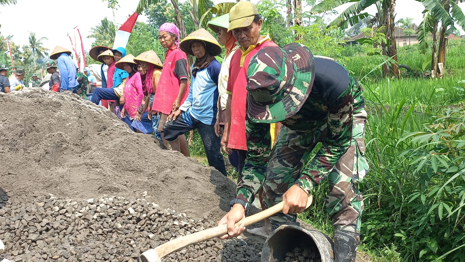 Salah satunya adalah Suci, (25), Ibu Muda tersebut dengan semangat Bersama warga lainnya mereka membantu Satgas TMMD, Suci tidak takut akan kepanasan,apalagi membuat tanganya lecet, Hal itu sudah menjadi kebiasaanya sehari hari bekerja di sawah saat membantu suaminya.