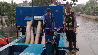 Aiptu Susilo Patroli Wilayah Antisipasi Genangan Air dan Pohon Tumbang di Wilayah Cempaka Putih