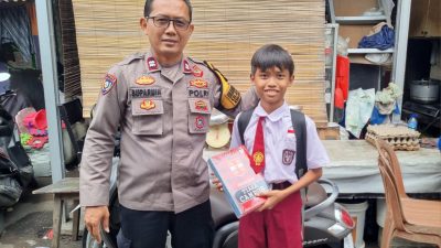 JAKARTA | POROSNUSANTARA.COM – Bhabinkamtibmas Kelurahan Karet Tengs in Aiptu Suparmin memberikan buku tulis kepada…
