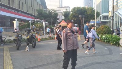 Bripka Tri Sugiyarto Memantau Aktivitas Masyarakat Sekitar Persimpangan Sarinah
