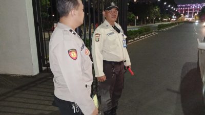 Patroli Malam Hari 1053 Samapta Polsek Metro Tanah Abang Dan Berikan Imbauan Kamtibmas Kepada Petugas Keamanan Pintu 10 GBK Senayan
