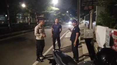 Patroli Malam Hari Aipda Wisnu Saputra Sampaikan Imbauan Ke Petugas Keamanan