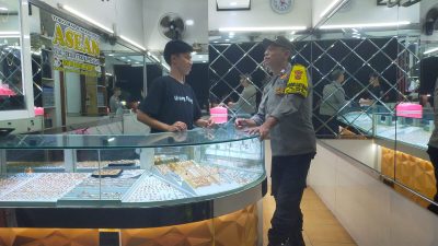 Patroli Wilayah dan Sambang Dialogis Aiptu Baktiar Emri Berikan Imbauan Kamtibmas Kepada Karyawan Toko Emas