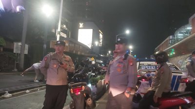 Personil Gabungan Polsek Metro Menteng Membubarkan Motor Yang Terparkir Depan Plaza Indonesia