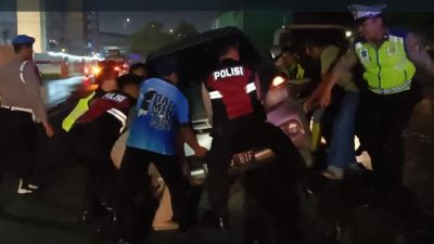 Polisi Evakuasi Mobil Yang Tersangkut Pembatas Jalan Di Tanjung Priok