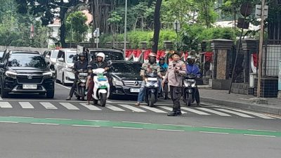 Unit Patmor Polsek Metro Menteng Melaksanakan Pengaturan Arus Lalu Lintas Sore Hari di Tl. Cepu 2 Jalan Diponegoro