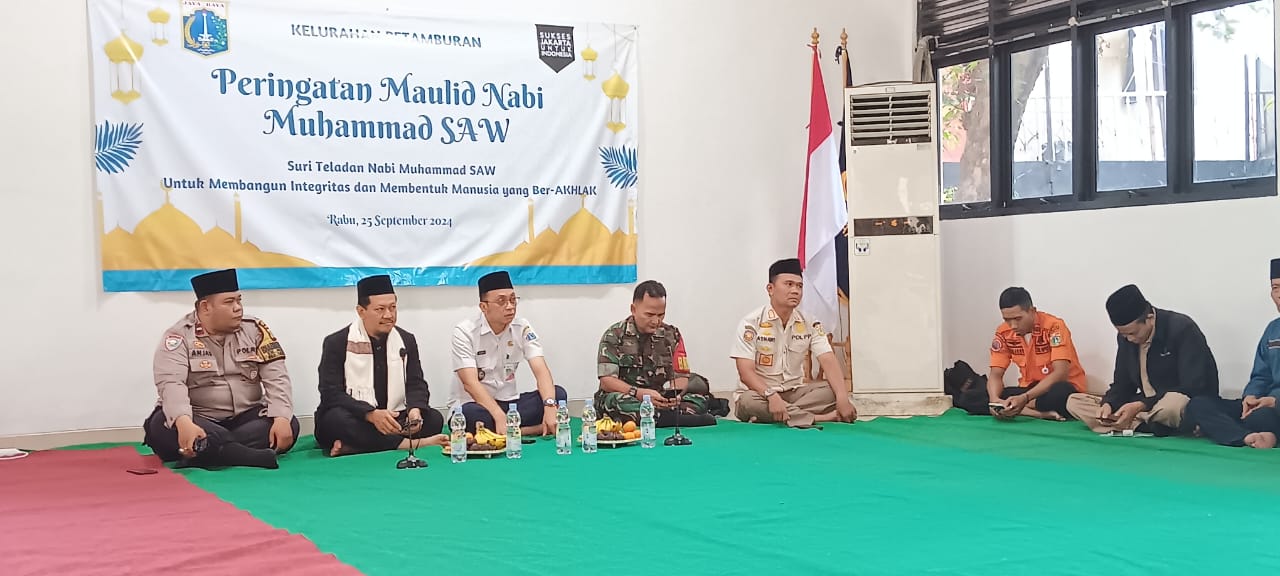Kegiatan Maulid Nabi Muhammad SAW 1446 H dihadiri oleh Lurah, Kasipem, Kasi Ekbang, Kasatgas Dukcapil, Bhabinkamtibmas, Babinsa, Kasatpol PP, FKDM, Para Ketua RW, LMK, Tokoh Agama, Tokoh Masyarakat, Pokdarkamtibmas dan PPSU.