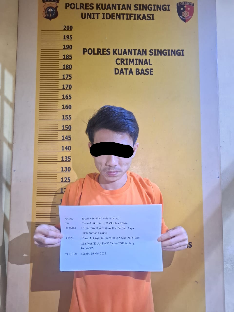 Tersangka dan seluruh barang bukti saat ini telah diamankan di Mapolres Kuantan Singingi untuk penyidikan lebih lanjut. Polres Kuansing terus mengimbau masyarakat agar aktif melaporkan setiap aktivitas mencurigakan terkait narkoba demi menjaga keamanan dan keselamatan bersama.” Pungkas Kasat.