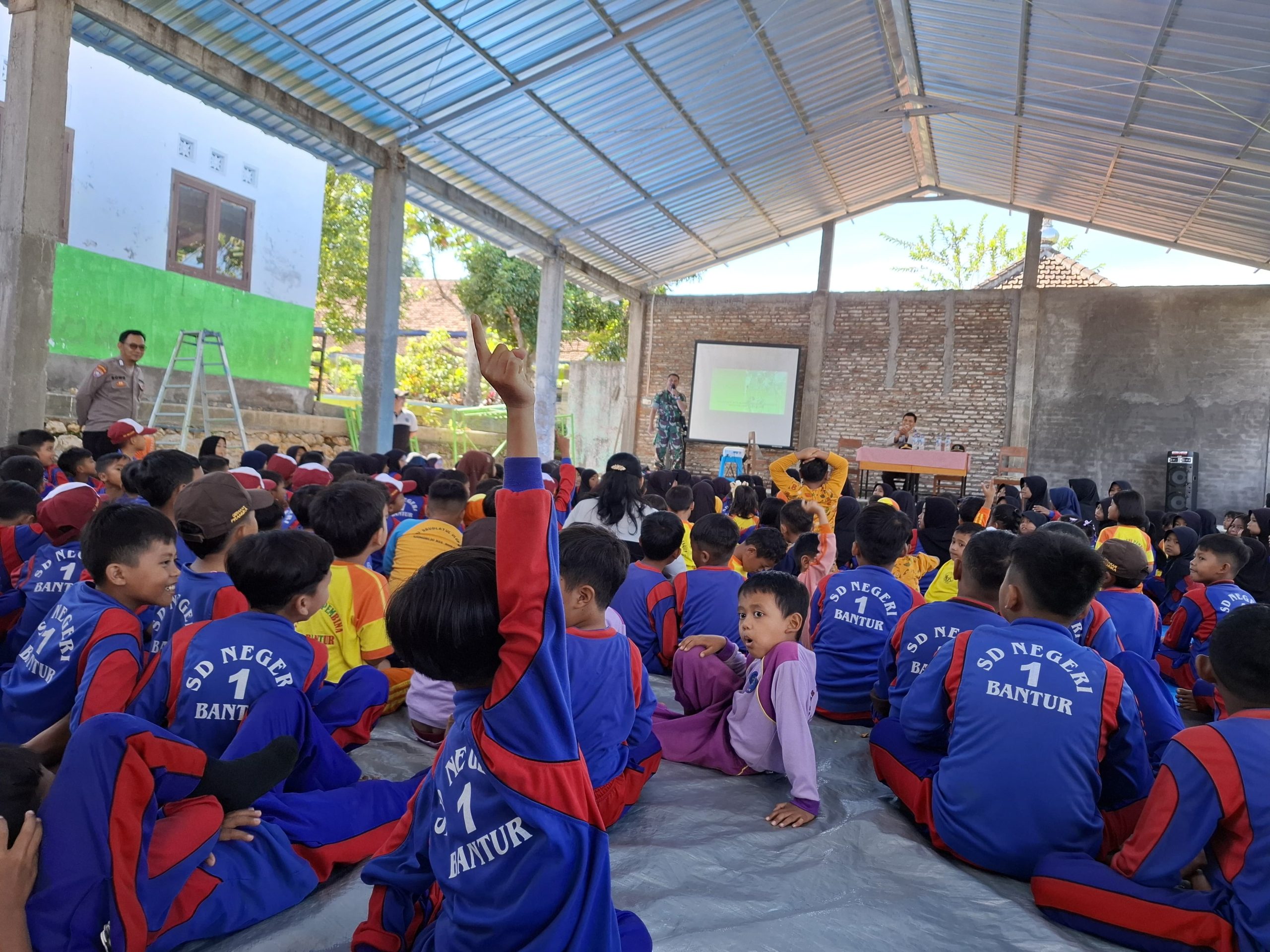BANTUR POROSNUSANTARA.COM – Upaya pencegahan tindakan perundungan (bullying) sejak dini terus dilakukan oleh aparat kewilayahan dan kepolisian. Sabtu (19/7/2025), Bati Tuud Koramil 12 Bantur Peltu Tomy Umbarsono bersama Kapolsek Bantur AKP Totok Suprapto, S.H. memberikan materi Wawasan Kebangsaan (Wasbang) tentang bahaya bullying kepada seluruh siswa-siswi SD Negeri 1 Bantur, Kecamatan Bantur, Kabupaten Malang.