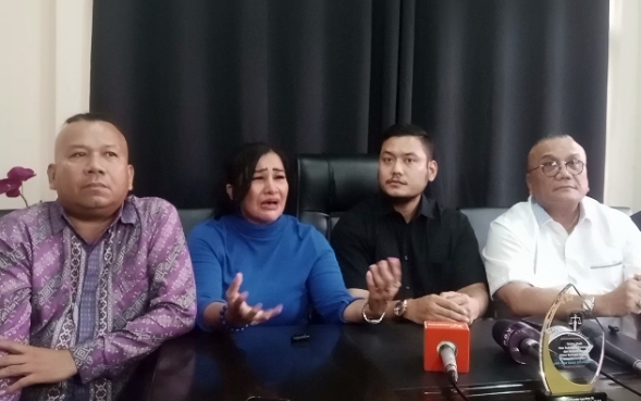 Mega Makcik didampingi tim Kuasa Hukum Law Firm Dr. Togar Situmorang, SH, MH, MAP, CMED, CLA, CRA., Axl Mattew Situmorang, S.H., M.H(c)., CCD., Dr(c). Darius Situmorang, SH.,MH.,C.R.A., mengelar Konferensi Pers, di kawasan Pejaten, Jakarta Selatan, pada Sabtu (28/9/2024).