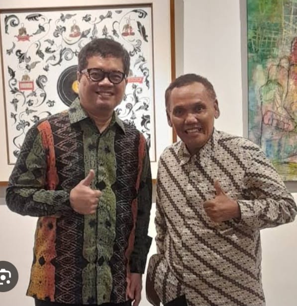 Penyair Pulo Lasman Simanjuntak berfoto dengan.Komponis Ananda Sukarlan di sebuah galeri seni di Jln.Kemang Raya No.30 Jakarta Selatan baru-baru ini.(Foto : Ist/Kir/Lasman)